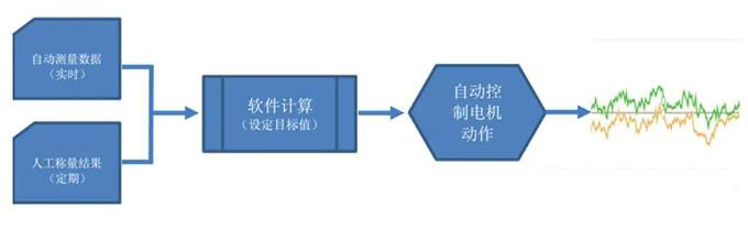 筆者有幸與一些國內外先進設備的供應商進行了多次技術交流,并在實際生產過程中接觸了部分料重自動控制系統,現將一部分體會與大家分享。“料滴重量自動控制”的基本工作原理是:軟件內設定好當前產品的目標重量值,采用一定的方式實時采集每個料滴/產品的數據,結合人工定期稱量的結果,軟件通過計算后自動發出相關指令,指揮勻料筒或(和)供料機沖頭電機產生相應的調整動作,使料滴實際重量與設定的目標值不斷趨于一致(見圖1)。