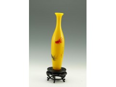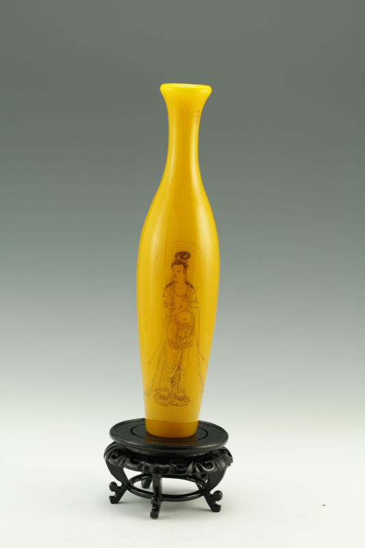 老琉璃名貴古色雞油黃花瓶 擺件藏品